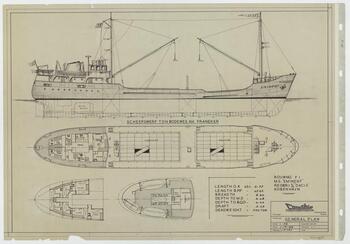 | omschrijving | Scheepsbouwtekeningen van het motorvrachtschip Eminent. A: Inkt op calque: algemeen plan, schaal 1:75; B: Inkt op papier: lijnenplan voorschip, schaal onbekend; C: Inkt op papier: lijnenplan achterschip, schaal onbekend; D: lichtdruk op calque: constructieplan, schaal 1:75 / 1:40; E: lichtdruk op calque: grootspant, schaal 1:20; F: inkt op calque: piping diagram, schaal 1:75; G: inkt op calque: accomodation deck, schaal 1:25; H: inkt op calque: accomodation poopdeck, schaal 1:25; I: inkt op calque: boat deck, schaal 1:25; J: inkt op calque: fire appliances, schaal 1:125; K: lichtdruk: dekuitrusting, diverse schalen; L: lichtdruk: sloependek, schaal 1:25; M: lichtdruk: motorfundatie, schaal 1:25 / 1:10; N: lichtdruk: tuigplan, schaal onbekend; O: lichtdruk: tuigplan en tuiglijst voormast, diverse schalen; P: lichtdruk: details masten, schaal 1:10; Q: lichtdruk: details laadbomen, schaal 1:10; R: lichtdruk: deplacementscale; S: lichtdruk: davits "coaster trim", schaal onbekend; T: lichtdruk: fundatie davits, schaal onbekend.