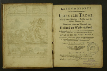 | titel | Leven en Bedryf Van den vermaarden Zeeheld Cornelis Tromp, Graaf van Sylliesburg, Ridder van den Olifant, Baronet, etc. Lieutenant Admiraal Generaal van Holland en Westvriesland. Ondermengd met de voornaamste daaden van verscheidene andere Zeehoofden, en voornaamentlijk met die van Marten Harpertsz. Tromp.Benevens een naauwkeurig verhaal van der Nederlanderen en hunner Bondgenooten Oorlogen, sedert den jaare 1650. teghens verscheidene Volkeren gevoerd. Voorzien met alle de noodige authentyke Stukken en Bewyzen, en vercierd met schoone kopere Figuuren.